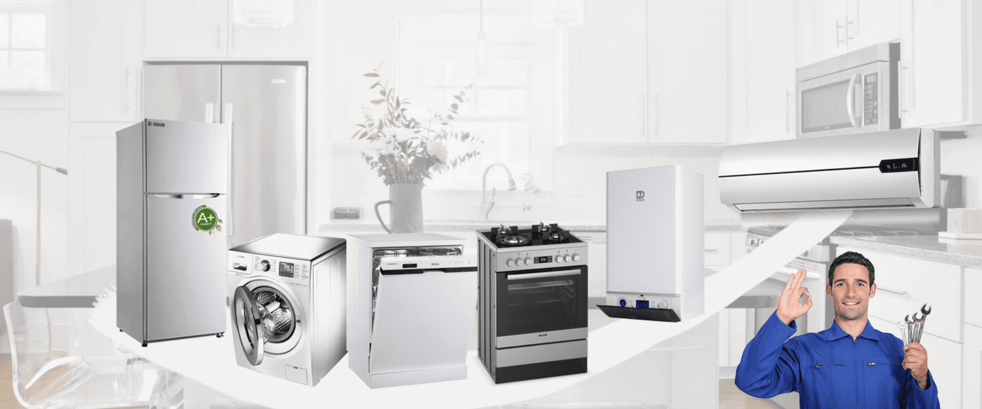 Her marka ve model beyaz eşyanız için profesyonel destek sunmaktayız. Kombi, klima, buzdolabı ve daha birçok cihazınız için gereken onarımları titizlikle gerçekleştirmekteyiz. Hızlı ve etkili çözümler için bizimle iletişime geçin.